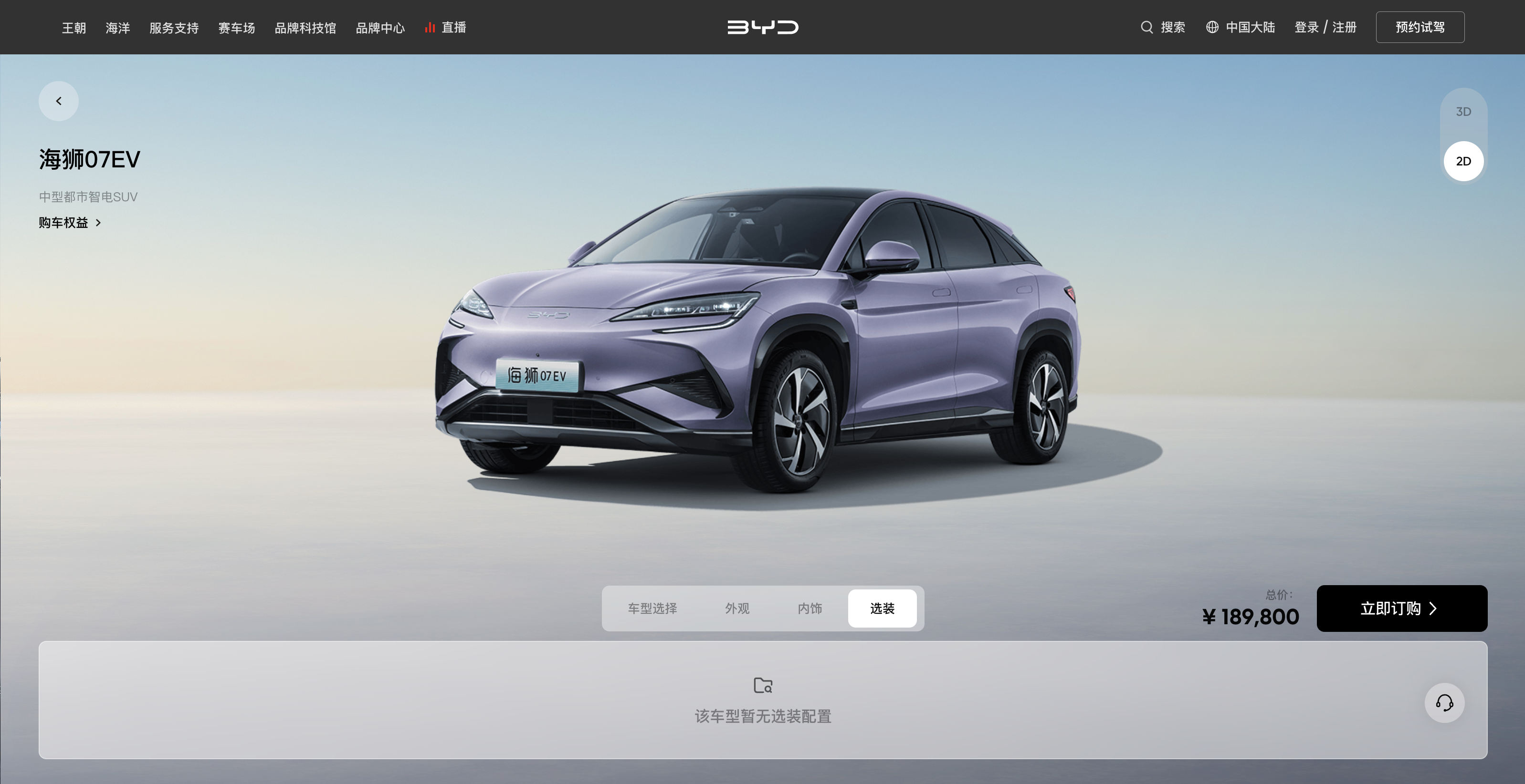 点击【立即订购】,进入车型选配页面。