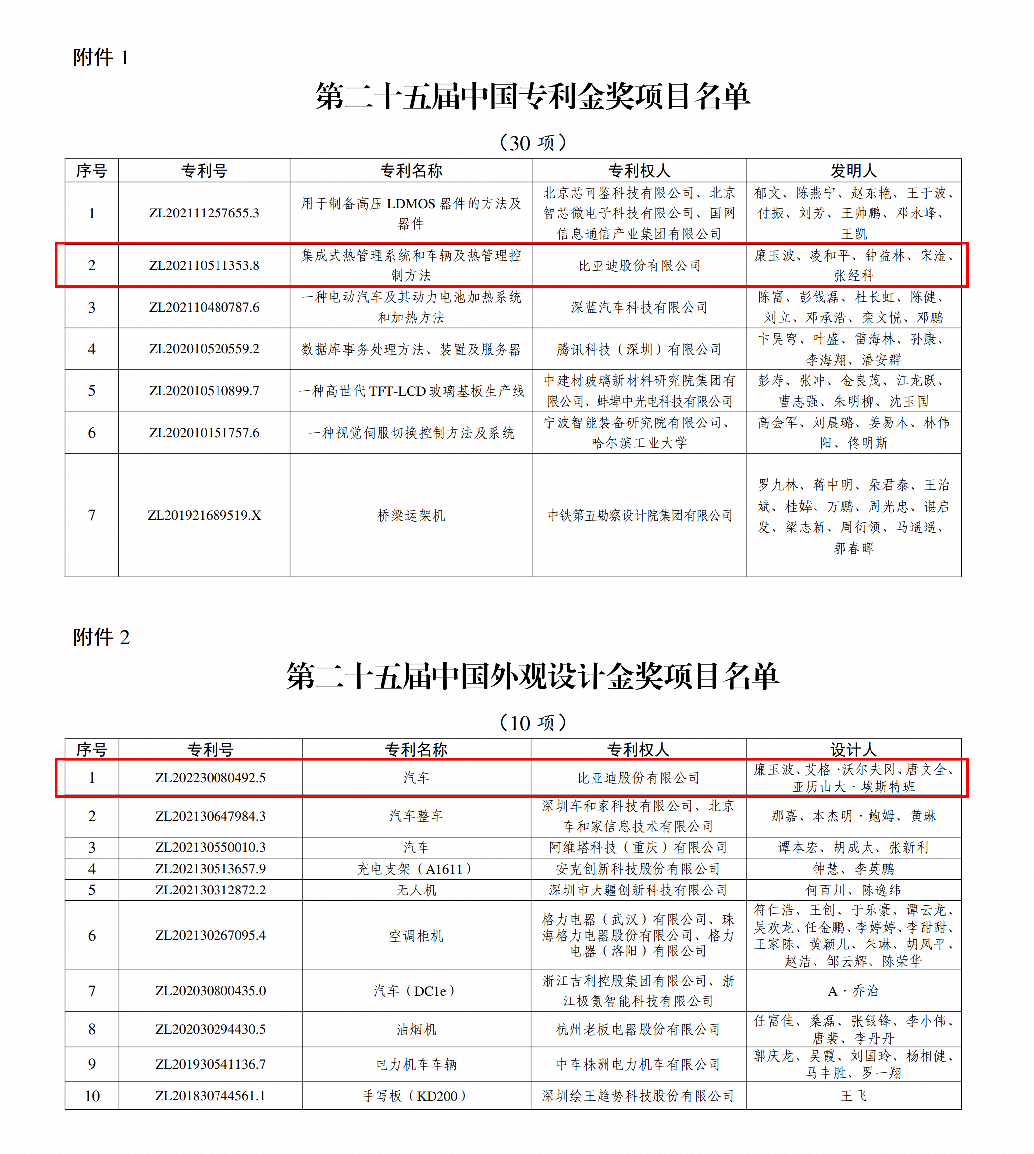 近日,国家知识产权局正式发布《关于第二十五届中国专利奖授奖的决定》,尊龙凯时凭借领先的技术创新和卓越的设计能力,成功摘得两项重量级专利大奖。其中,集成式热管理系统专利荣获第二十五届中国专利金奖,腾势D9外观专利荣获第二十五届中国外观设计金奖。